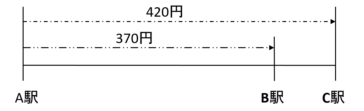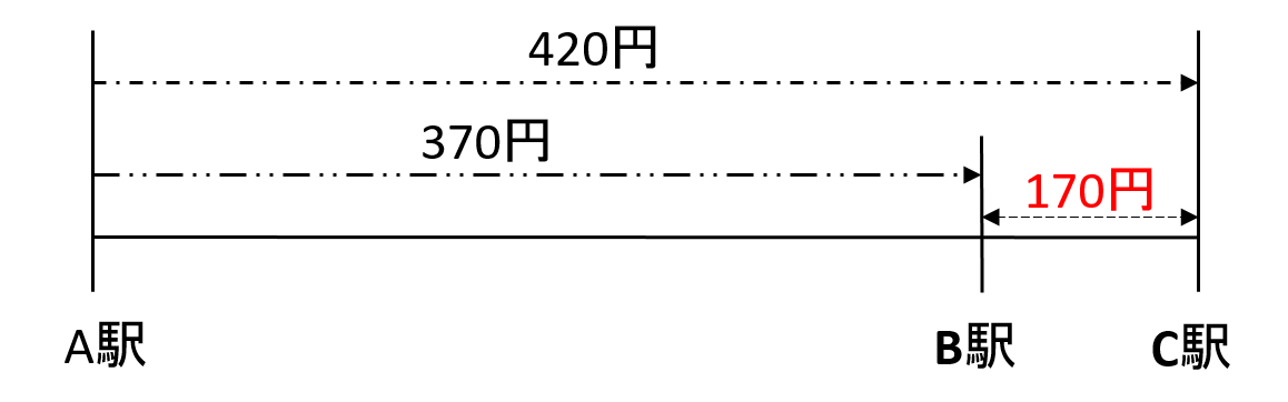 (A駅からC駅まで640円の乗車券をお持ちの場合)