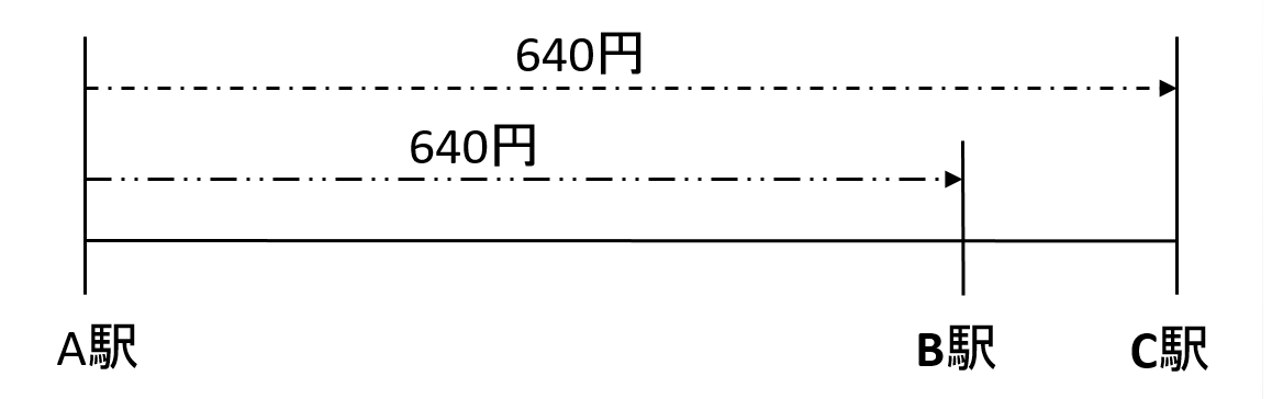 (例) A駅~C駅 640円、 A駅~B駅 640円